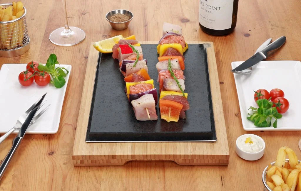 SteakStones are really great either in place of or in addition to your barbecue. These delicious fish and vegetable skewers are super easy to prepare and make a really great meal to share between two.